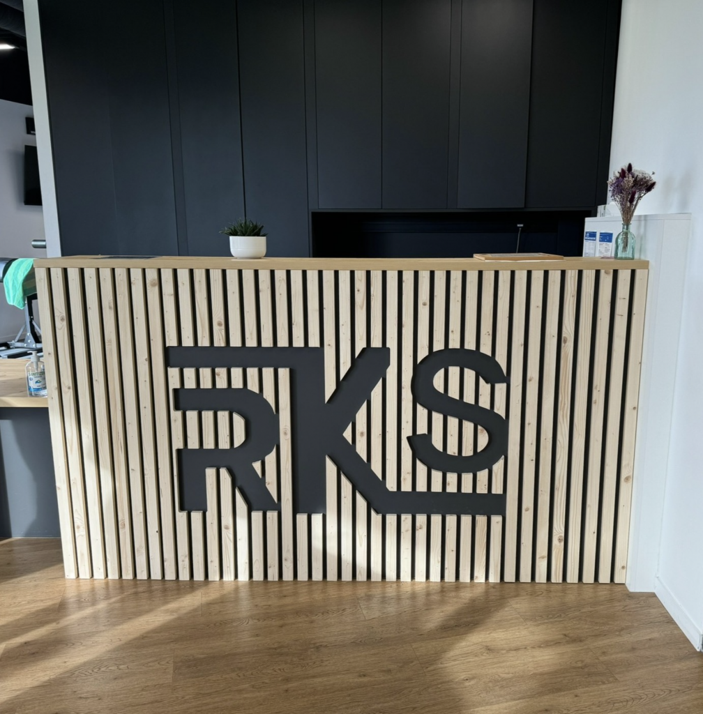 Nouvel habillage pour la banque d’accueil au sein du groupement de kinésithérapeutes RKS à Pérignat-lès-Sarliève.